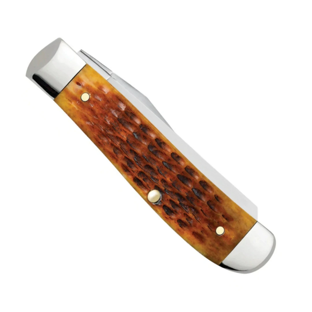 The Case Antique Bone Rogers Corn Cob Jig Peanut features both a clip point blade and a drop point blade, increasing the functionality and versatility of this knife. This tough, every day carry is in it for the long haul. The simple yet effective design of this knife is sure to become a favorite.Â