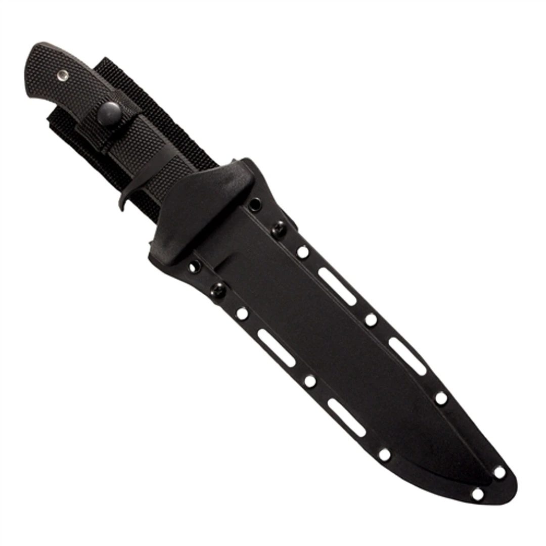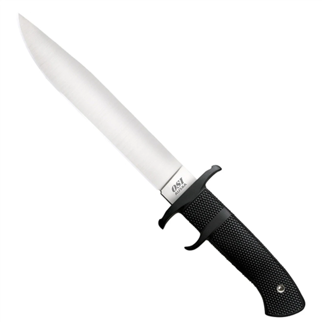 The Cold Steel OSI is the single edged version of the OSS. This “sticker” is hollow ground to a thin, ultra keen edge. Built to slash with the best of them, this knife is an outstanding field knife. A sub-hilt fighter that has an extremely solid grip. The handle guard and sub hilt are injection molded from one integral piece of Kray-Ex. Great for those who need a single edge knife.
