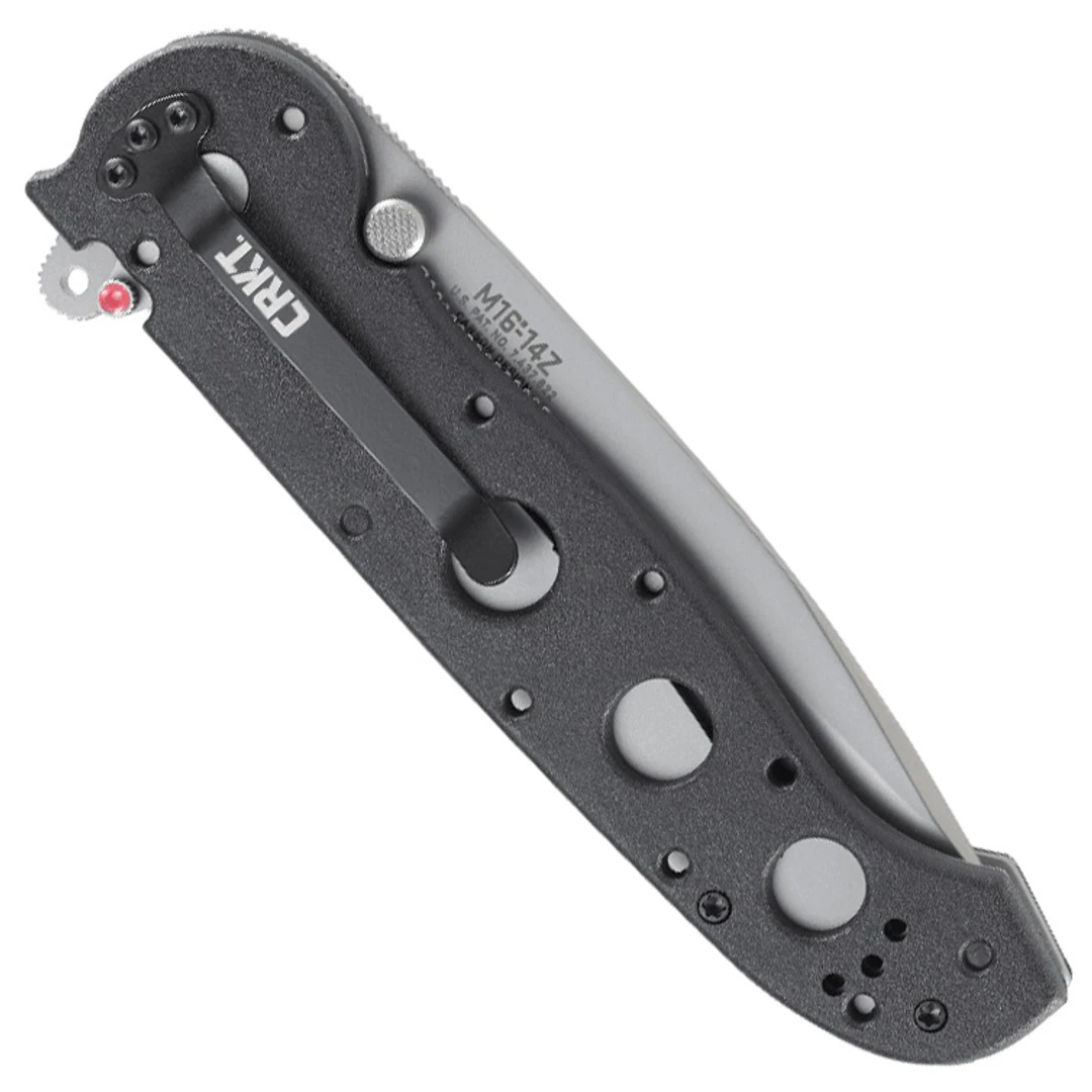 The Z variation of the M16-14 Kit Carson designed knife is the most popular set-up and built for the largest user base of all the variations. Each liner lock designed model features the Carson Flipper that not only deploys the blade but doubles as a blade guard in the open position. Additionally this knife features CRKT’s automated liner safety which is a next-generation locking mechanism that sets a pin between the locking liner and the frame–virtually turning this folder into a fixed blade. This model features black GRN (Glass-Reinforced Nylon) handles, stainless steel liners, a partially serrated tanto style blade, complete with Triple Pointâ„¢ serrations, in a bead blasted finish and the fully reversible 4-way pocket clip is designed for tip up or tip down carry on either side of the handle.
