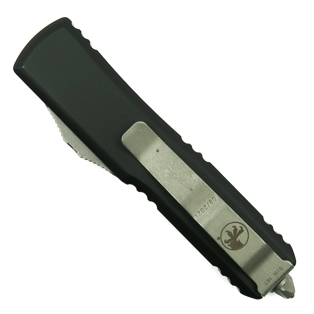 The radically redesigned Microtech UTX-85 out the front knife now features a new contoured handle, updated tri-angle hardware, a redesigned thumb slide and the glass breaker that now includes a press fitted ball bearing for a more comfortable, but still functional, user experience. This fantastic dual action knife is the ideal size and as the name exhibits, the UTX-85 is 85% the size of the flagship Ultratech knife but with 100% of the capability.Â