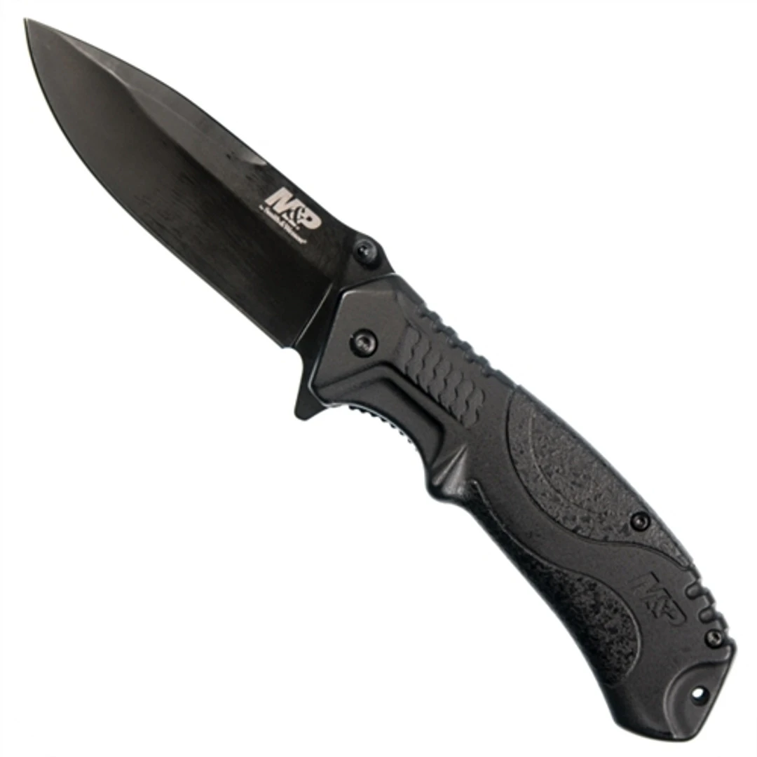The legacy of Smith & Wesson knives and tools is built on fine craftsmanship, quality and dependability. Their expansive line consists of assisted opening, folding and fixed blade knives, as well various multi-tools and accessories in an effort to offer something for every need and every job. Each model features a liner lock design and the stainless steel blade is deployed with the ambidextrous spine flipper function while the Ultra-Glide® ball-bearing and pivot pin system allows for quick fluid action even without the use of any springs. This model features black nylon and textured rubber overmolded handle scales, stainless steel liners, a drop point style blade in a black finish and the deep carry pocket clip is statically designed for tip down carry only on the traditional side of the handle.