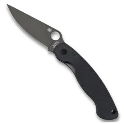 The Spyderco Military models were designed with the needs of deployed service personnel in mind and truly exemplify Spyderco’s motto of “Reliable High Performance.” Each model boasts a premium stainless steel blade featuring a modified clip point profile and a full-flat grind that provides an exceptional balance of strength and cutting performance. Because of its size and the fact that it was designed to withstand the harshest of environments, the Spyderco trademark round hole opening feature has been enlarged for positive one-handed opening–even with gloves. The slightly flared base of the handle as well as the integrated jimping provides increased control and this folder knife also features an ultra strong liner lock design nestled right into the handle. The tremendous popularity of the initial model inspired an entire family of variations with different handle materials as well as locking mechanisms. This model, the C36GPBK, features black textured G-10 handle scales, a DLC (Diamond Like Carbon) black finished CPM-S30V blade and the pocket clip is designed for tip down carry only. Made in the USA.
